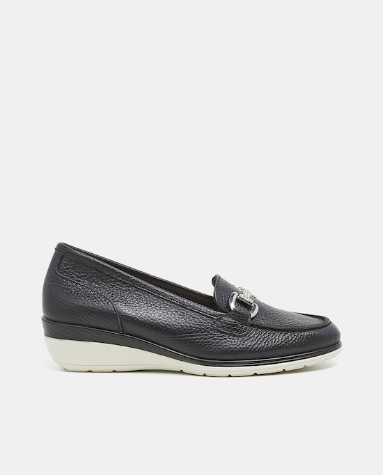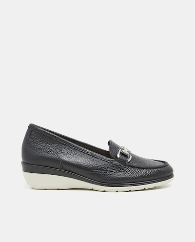 Mocassins em Pele com Cunha - Preto