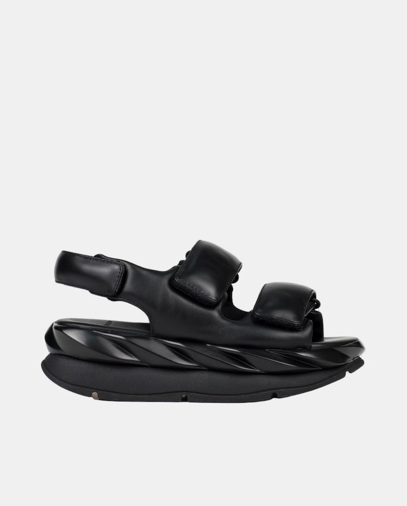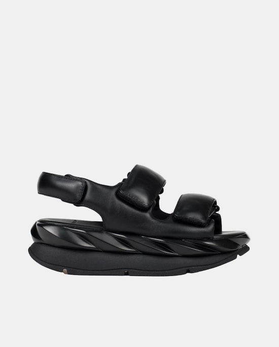 Sandálias em Pele com Plataforma e Fecho de Velcro