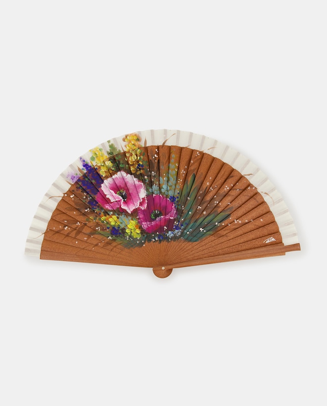 Leque com Papoilas Pintadas à Mão e em Madeira - Castanho