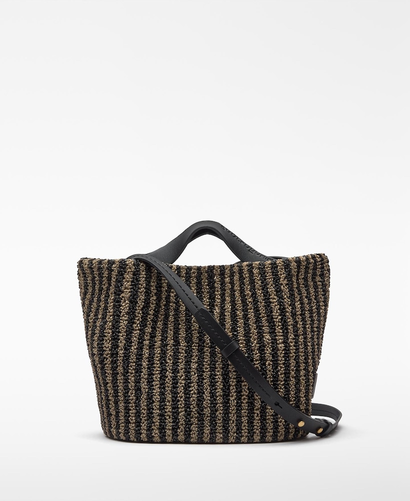 Mala de Mão Às Riscas com Textura de Ráfia