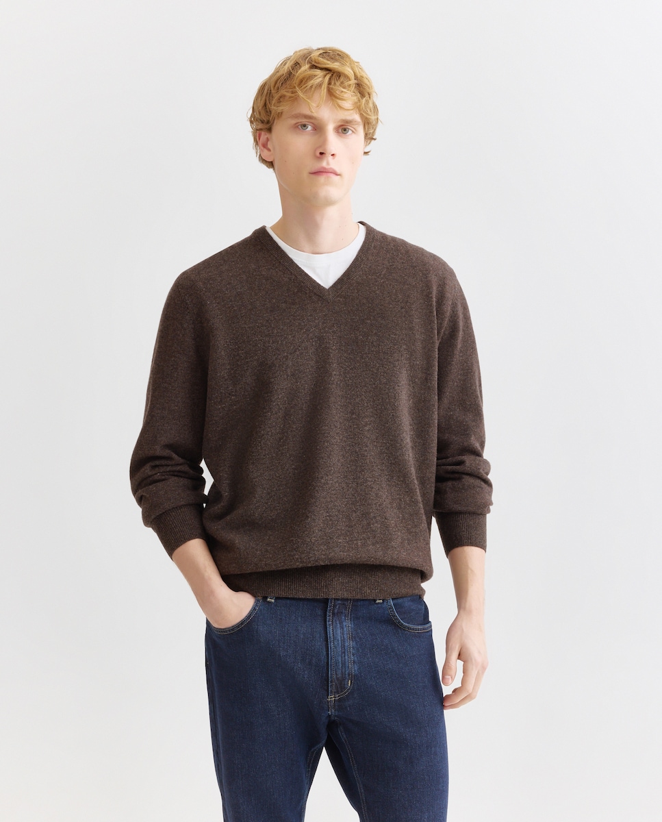 Camisola de Malha com Decote em Bico e em Lã 100% Caxemira