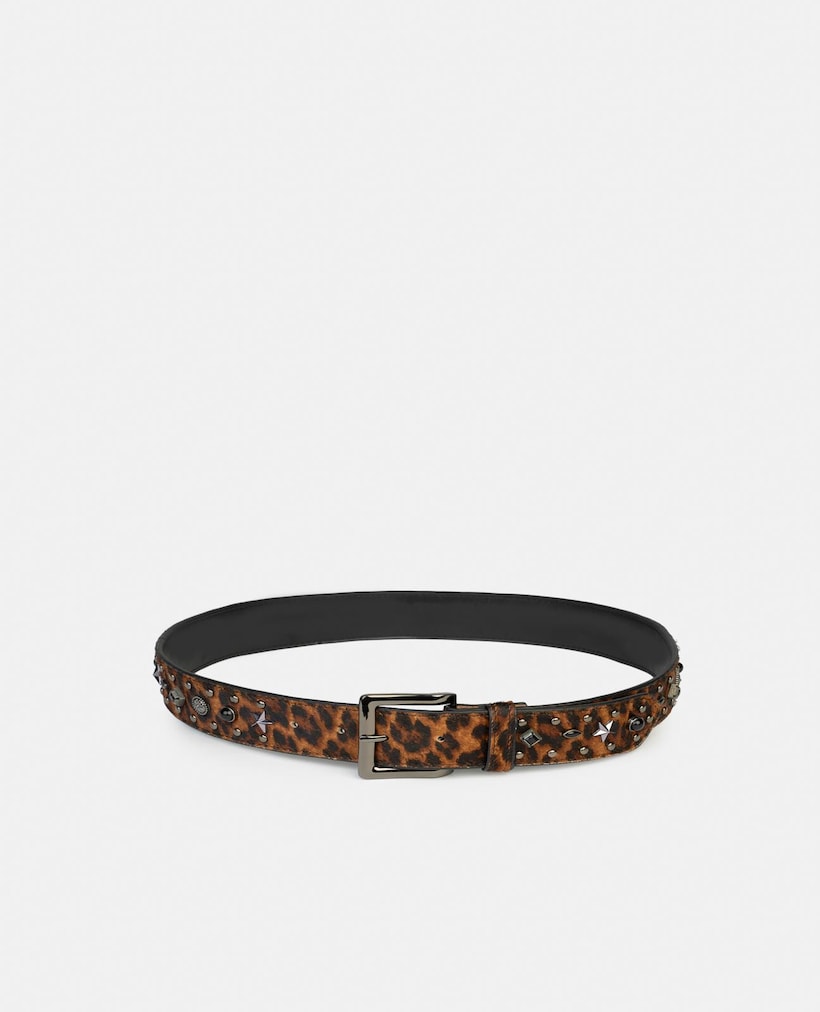 Cinto de Pele com Fivela Quadrada e Detalhes de Tachas