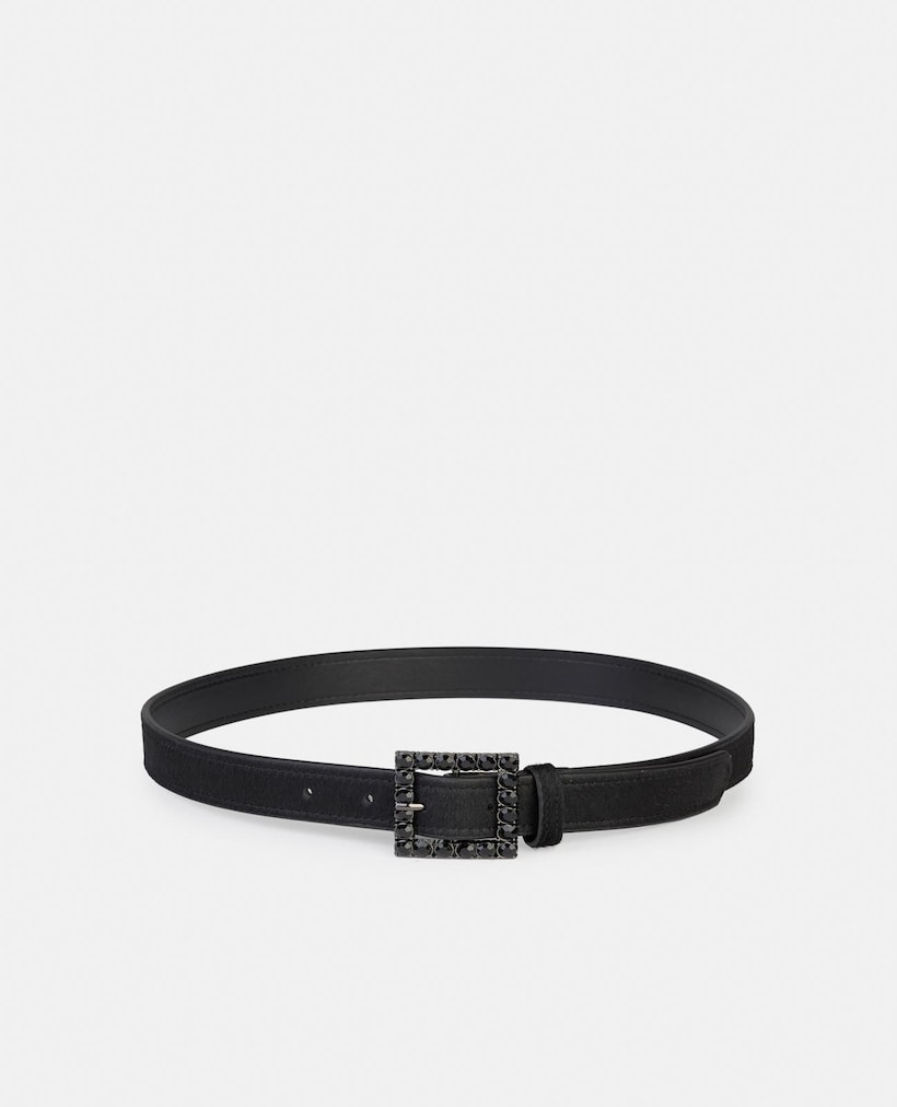 Cinto de Pele com Fivela Quadrada e Detalhes de Pedraria