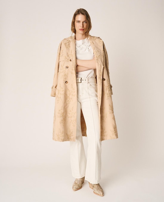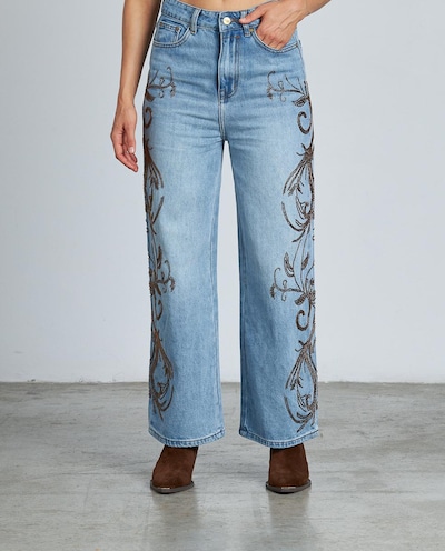 Jeans com Corte a Direito com Detalhe de Tachas Bordados