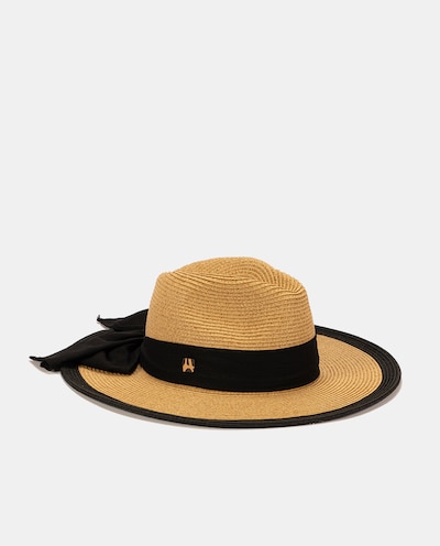 Chapéu Gambler com Fita e Laço - Bege/Preto