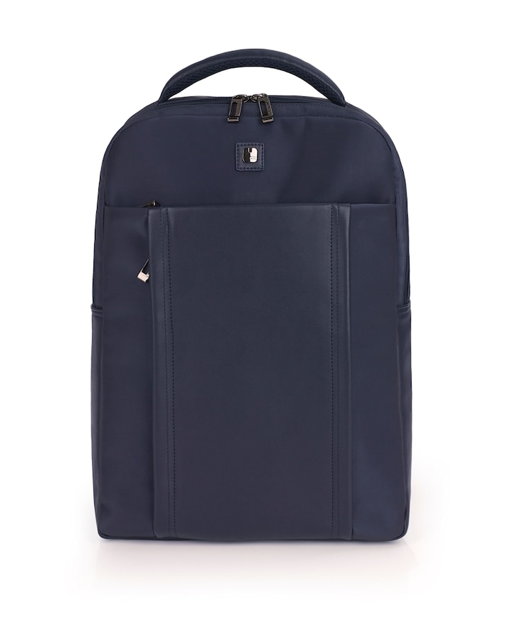 Mochila para portátil de 15,6'' de pele sintética, azul, com dois compartimentos.