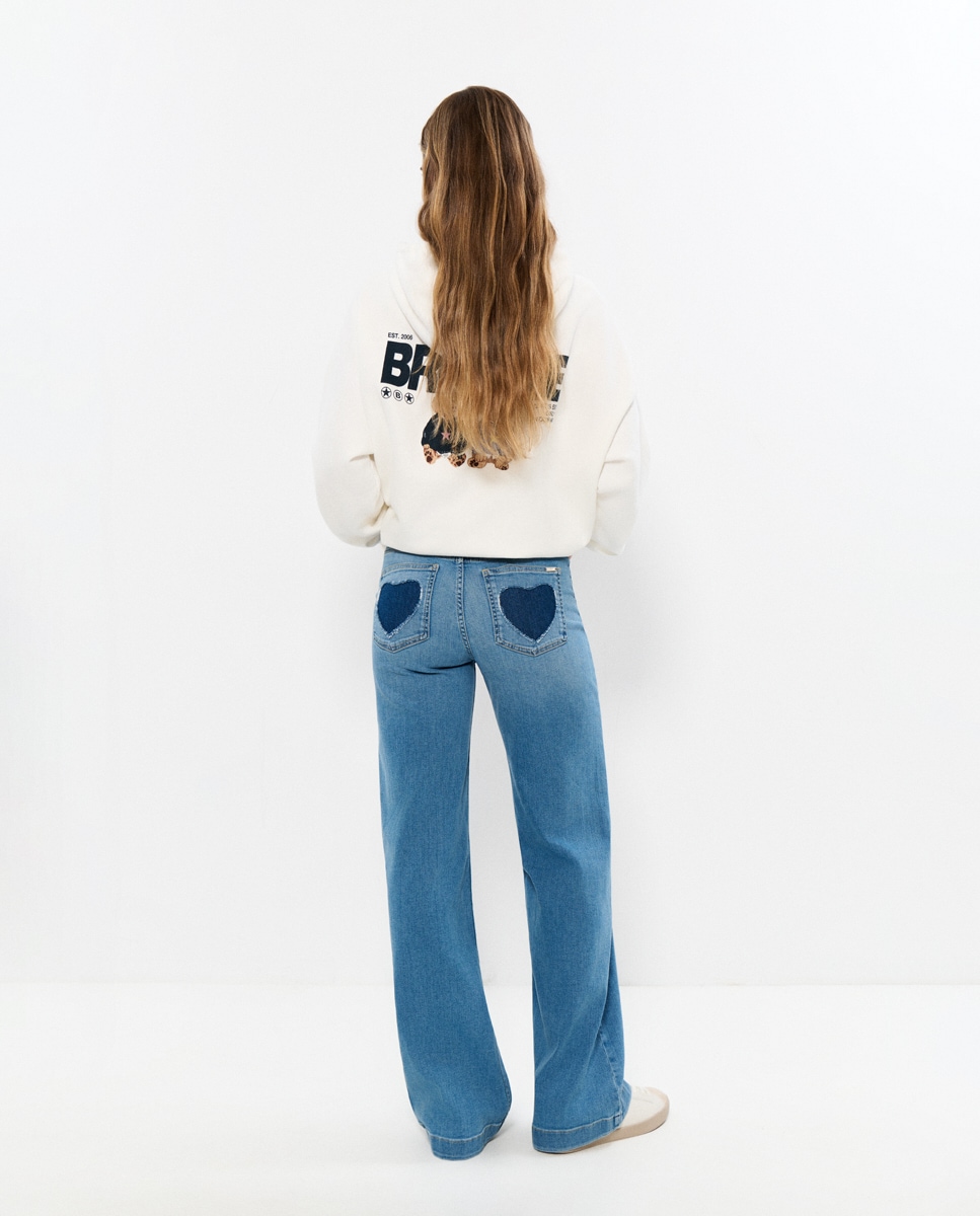 Jeans com Corte a Direito com Estrelas