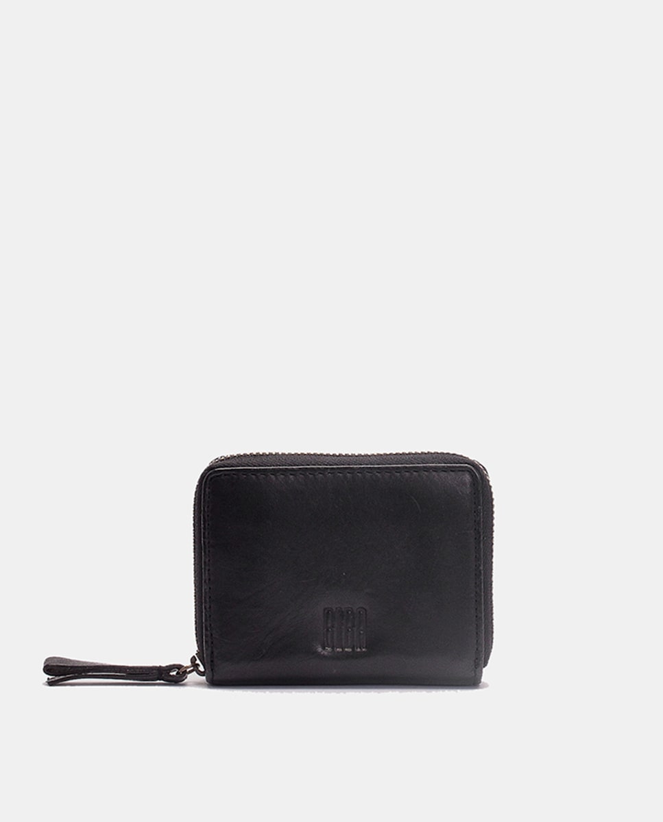 Carteira de Pele Pequena com Fecho de Correr - Preto