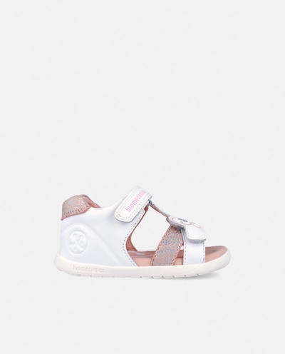 Sandálias em Pele com Velcro Duplo
