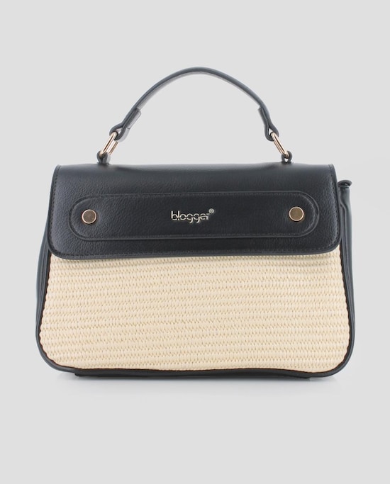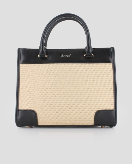 Mala de Mão de Ráfia com Detalhes Metálicos Dourados