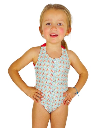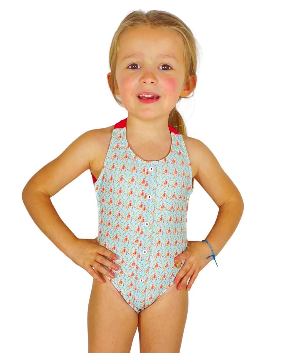 Fato de banho menina com estampado de flores e botões