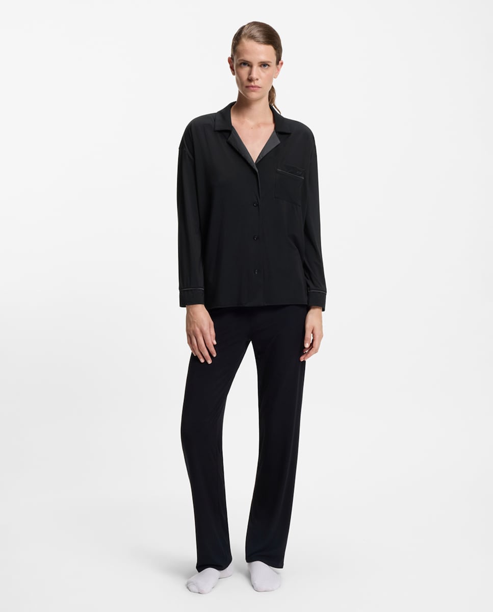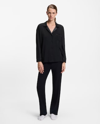 NovoBossCamisa de Dormir de Alças de Comprimento até ao Joelho e com Decote em Bico e Aplique de Renda - PretoAdicionar