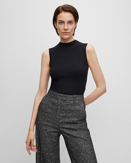 Top sem Mangas com Estrutura Canelada e Gola Inglesa