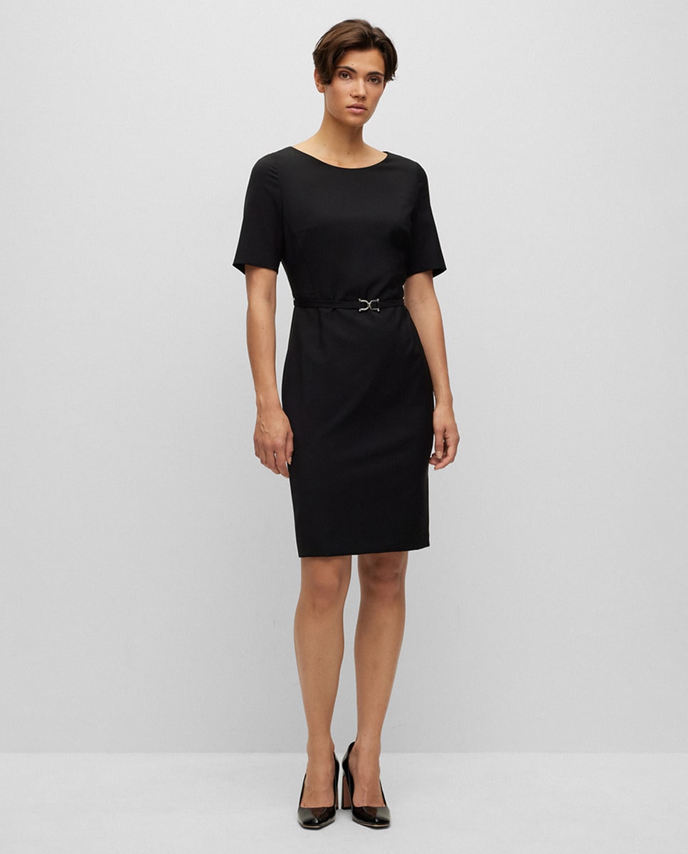Vestido Slim Fit com Detalhe de Cinto e em Lã Virgem
