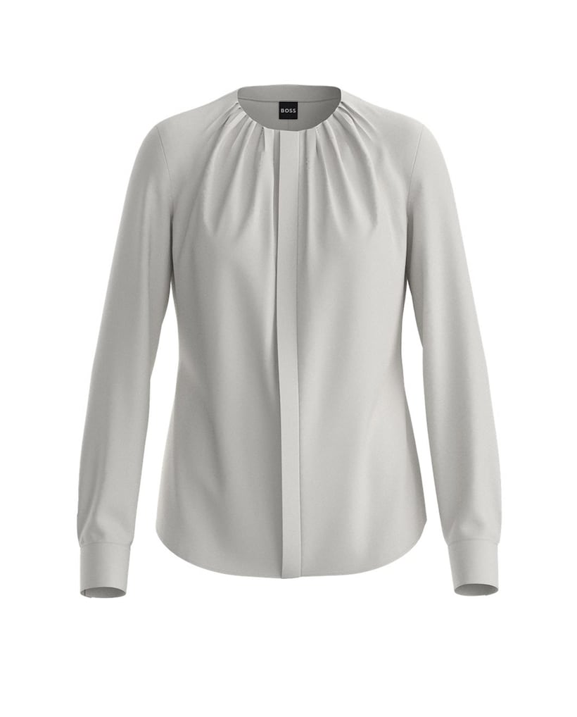 Blusa com Gola Franzida em Crepe da China e Seda Elástica