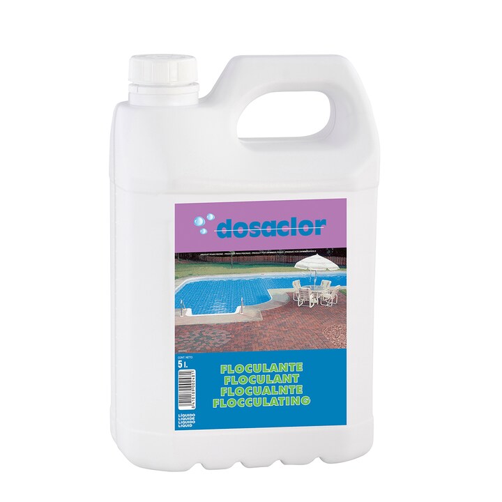Líquido floculante que elimina eficazmente a turvação e as impurezas da água, precipitando-as no fundo da piscina, onde só resta passar lentamente o aspirador de piscinas (recomenda-se aspirador manual) para aspirar a sujidade. A utilização deste produto clarificante é recomendada quando se detecta sujidade na piscina devido ao uso prolongado por vários banhistas (restos de cremes, sujidade, suor, etc.), devido ao arrastamento de pequenos materiais, poeiras e partículas que se depositam na água pela acção da chuva e do vento ou devido ao depósito de pólen no espelho da piscina. Também, por vezes, quando, sem saber a razão, a água da piscina se encontra turva apesar de ter os níveis correctos de cloro e pH.