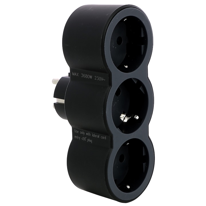 Adaptador Elétrico 3 Tomadas Schuko Frontais
