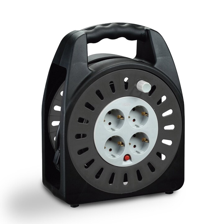 - Este extensible Simon está diseñado para uso doméstico y combina seguridad y practicidad con su enrolla-cables automático, que evita enredos y facilita el almacenamiento.