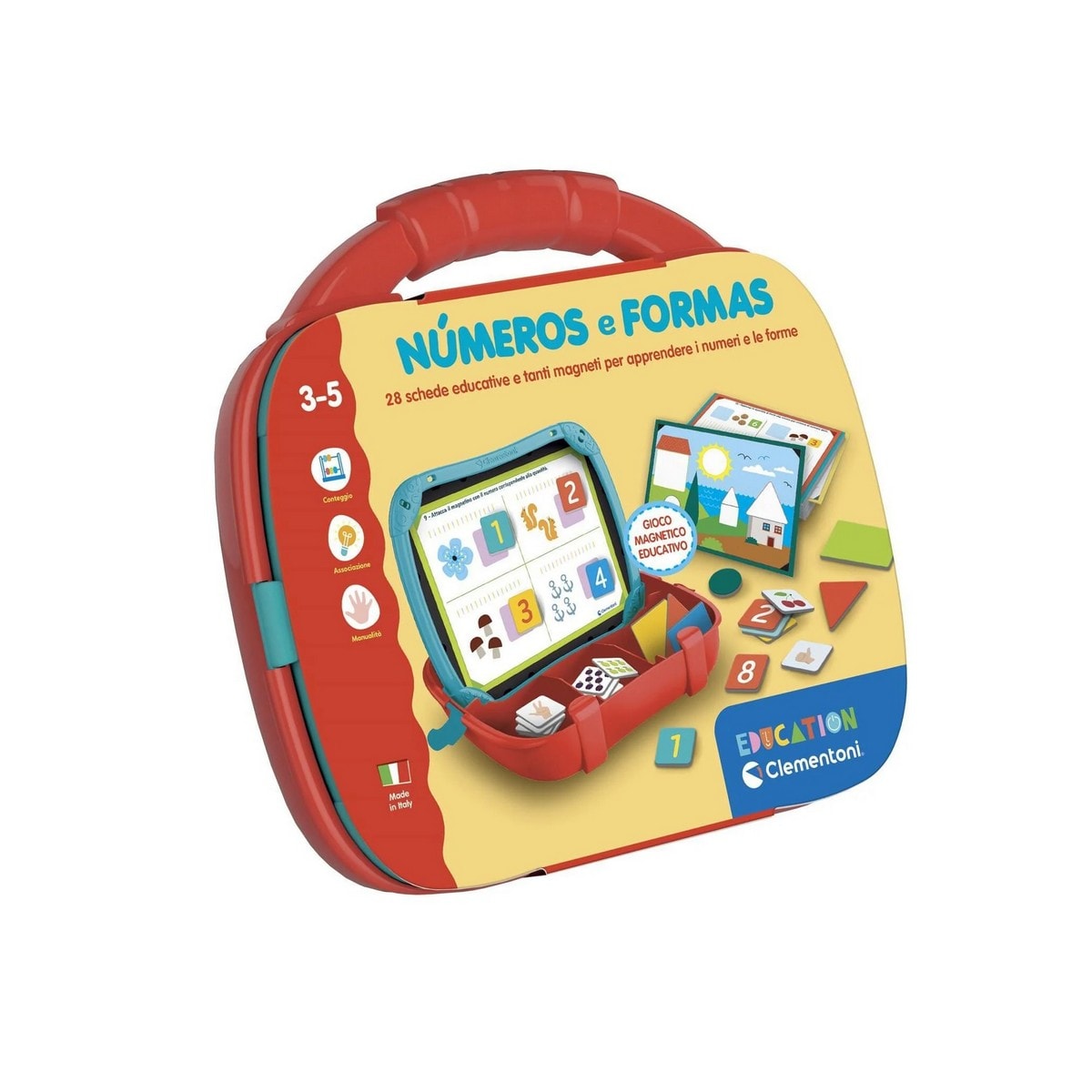 Uma mala magnética perfeita para todas as crianças que se preparam para ir para a escola primária! Neste jogo, os números e as formas são apresentados através de inúmeros ímanes coloridos que ajudam as crianças a consolidarem os seus conhecimentos sobre os temas abordados. O jogo inclui um folheto com um percurso educativo estruturado para orientar a criança na aprendizagem. A mala tem vários compartimentos para guardar os materiais de jogo e manter tudo organizado e levar para todo o lado. Além disso, o quadro para fixar os ímanes tem um lado onde se pode escrever com o marcador apagável incluído.