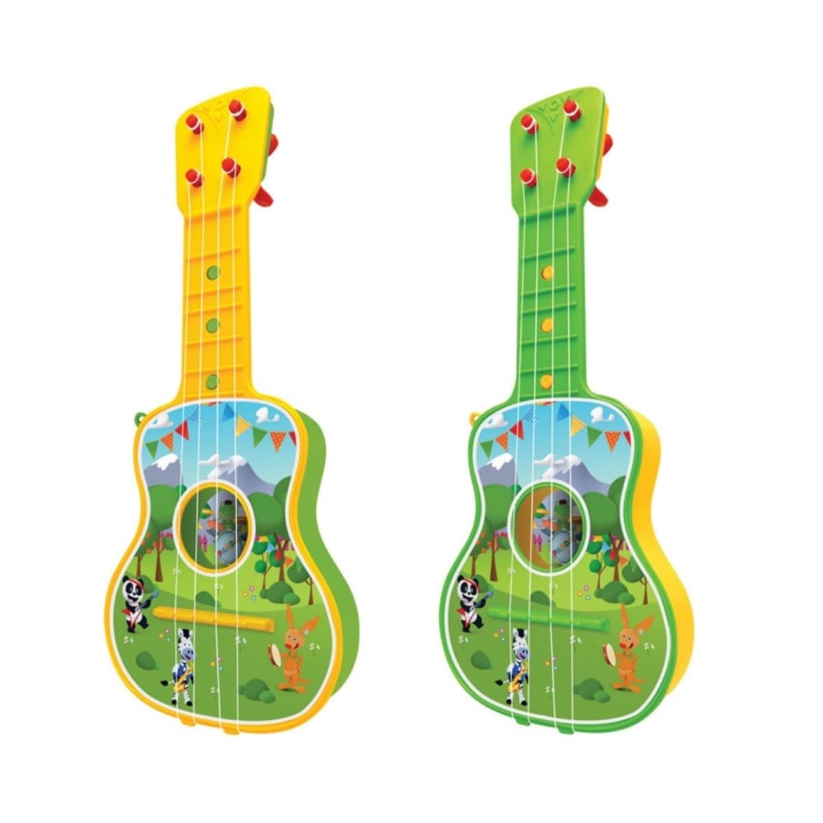 Vem tocar com o Panda e os seus amigos!! Junta-te à banda com a Guitarra do Panda! É super colorida, tem imagem do Panda e dos seus amigos, vem com 4 cordas e 1 correia para colocares ao pescoço!