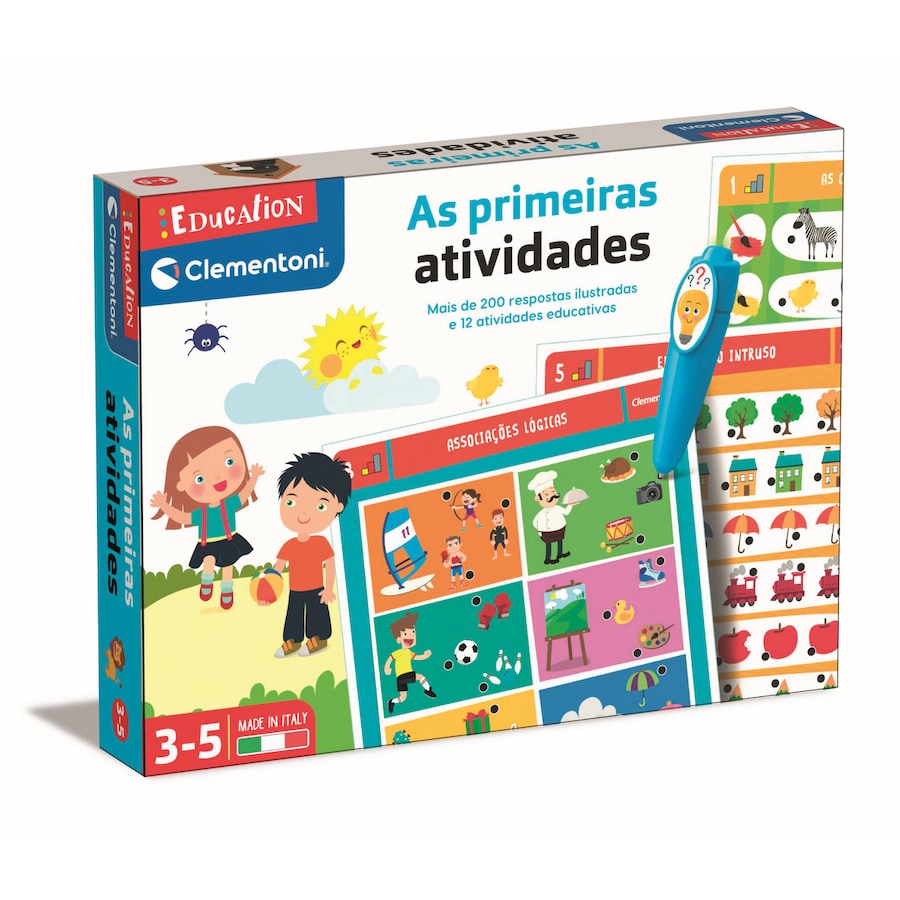 Inclui 6 grandes cartas de jogo com 12 atividades educativas e mais de 100 quizzes que as crianças poderão resolver utilizando uma caneta interativa!
