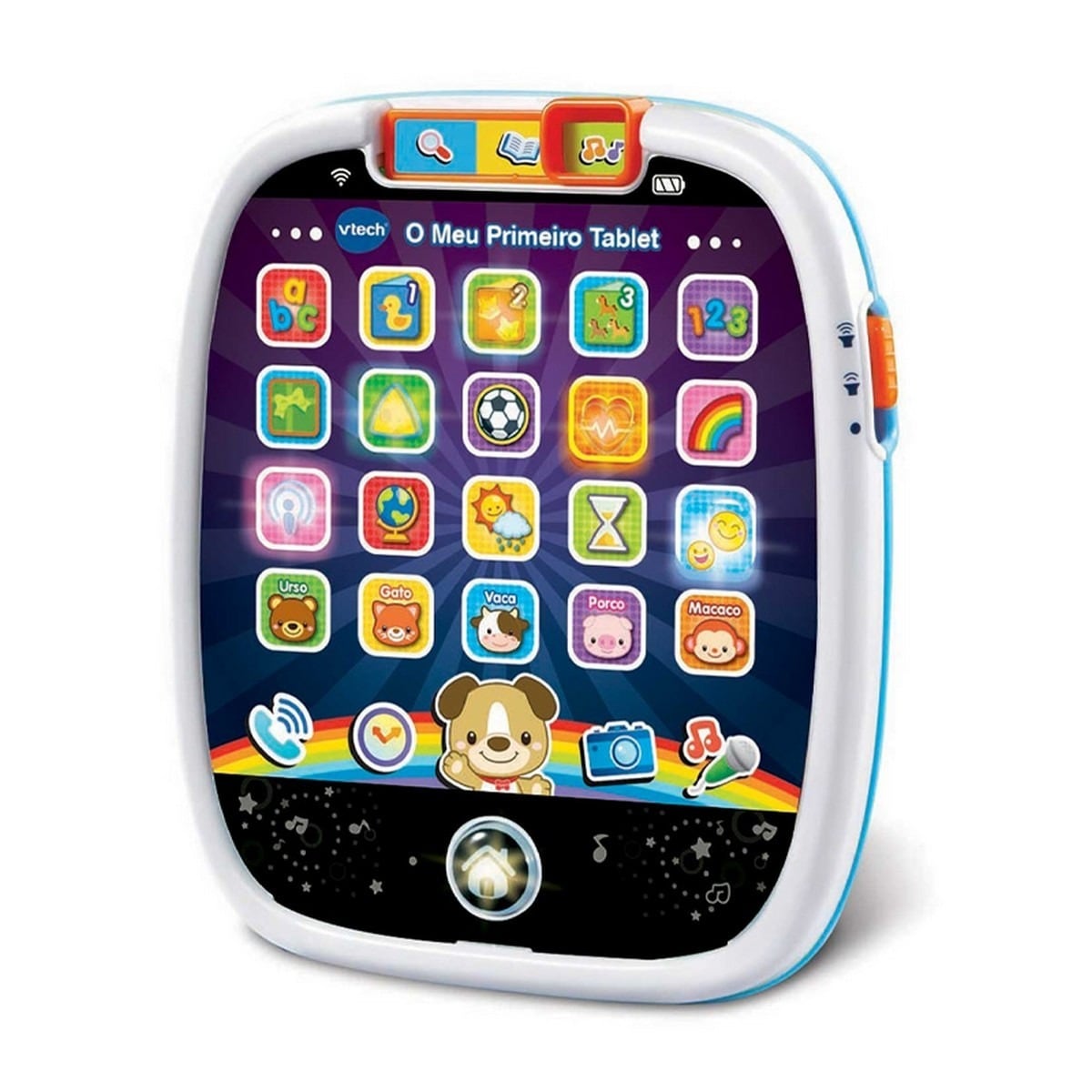 Com O Meu Primeiro Tablet da Vtech, a criança vai ter o seu próprio computador e adorar imitar os crescidos. Quando toca nas 25 aplicações luminosas de brincadeira, a criança vai poder descobrir e explorar os números, as letras, as cores, as formas, os animais e muito mais? Pode também tirar fotografias virtuais, fazer telefonemas faz-de-conta e ver as horas! Tem 3 modos de jogo, Explorar, Aprendizagem e Música. Carregar no Botão Central e nas aplicações do ecrã táctil desencadeia divertidos padrões luminosos. Este brinquedo inclui 3 canções e 20 melodias. Com as suas atividades didáticas interativas, este tablet vai entreter a criança durante horas!