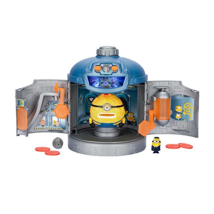 Reproduz um momento chave do filme com o unboxing deste super produto. Tira o mini minion escondido na lateral da câmara e introduz pela tampa superior, ativa a câmara e começa a transformação, a mini figura de Jerry ao abrir a câmara terá sido convertida numa figura gigante exclusiva.