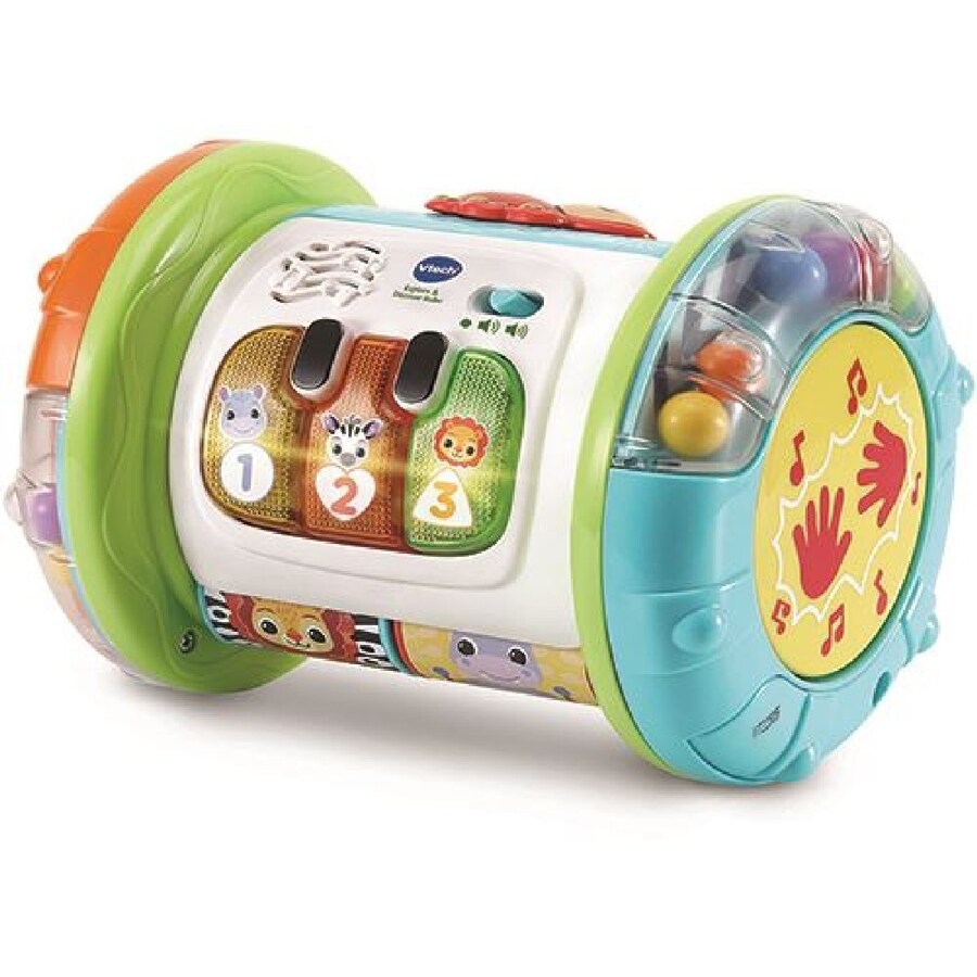 O Rolo de Atividades da Vtech é um brinquedo versátil, que acompanha o crescimento do seu bebê desde que ele se senta até que começa a gatinhar! Com 5 maneiras diferentes de brincar, este rolo interativo oferece uma experiência educativa e divertida. As 3 teclas de piano luminosas introduzem animais, cores, números e notas musicais, incentivando o desenvolvimento cognitivo desde cedo. Ao bater no grande botão do tambor, a criança descobre uma variedade de sons e ritmos, promovendo a exploração sensorial e auditiva. Projetado com materiais seguros e coloridos que atraem a atenção, o Rolo de Atividades da Vtech é ideal para estimular habilidades motoras e o interesse pela música desde os primeiros meses de vida. Prepare-se para rolar, tocar e descobrir novas formas de aprender com seu bebé!