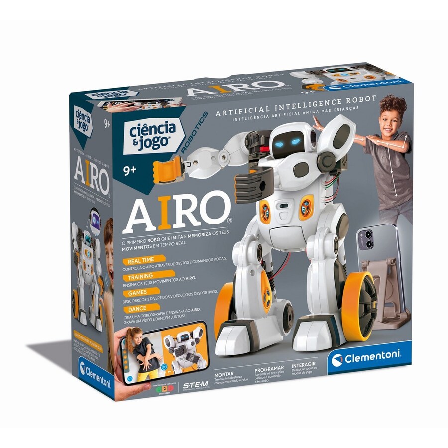 Um robô inovador equipado com inteligência artificial que permite reconhecer gestos, através da câmara do telemóvel, e associá-los a um comandos de voz. Com 6 motores que permitem ao robô andar em todas as direções e fazer vários movimentos com os braços.