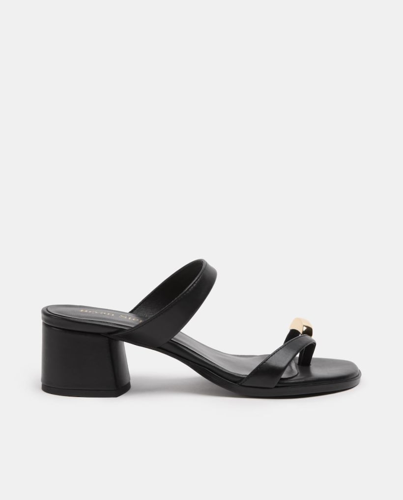 Sandálias em Pele com Salto Largo