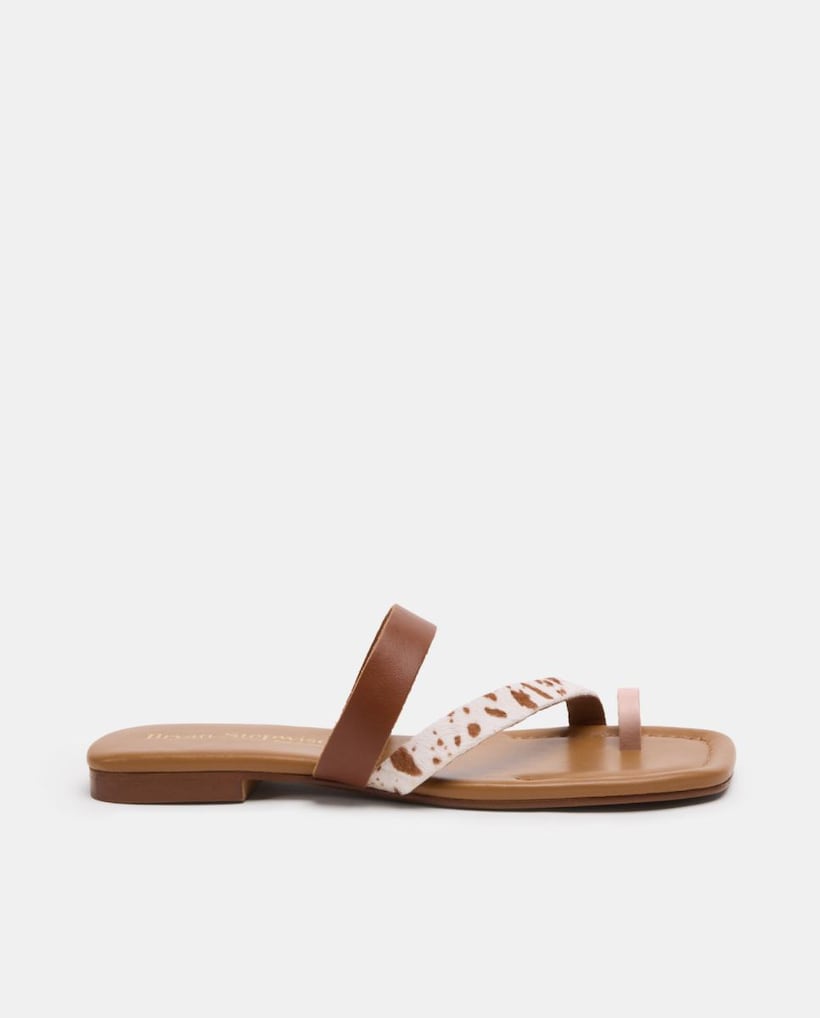 Sandálias Rasas em Pele com Tiras