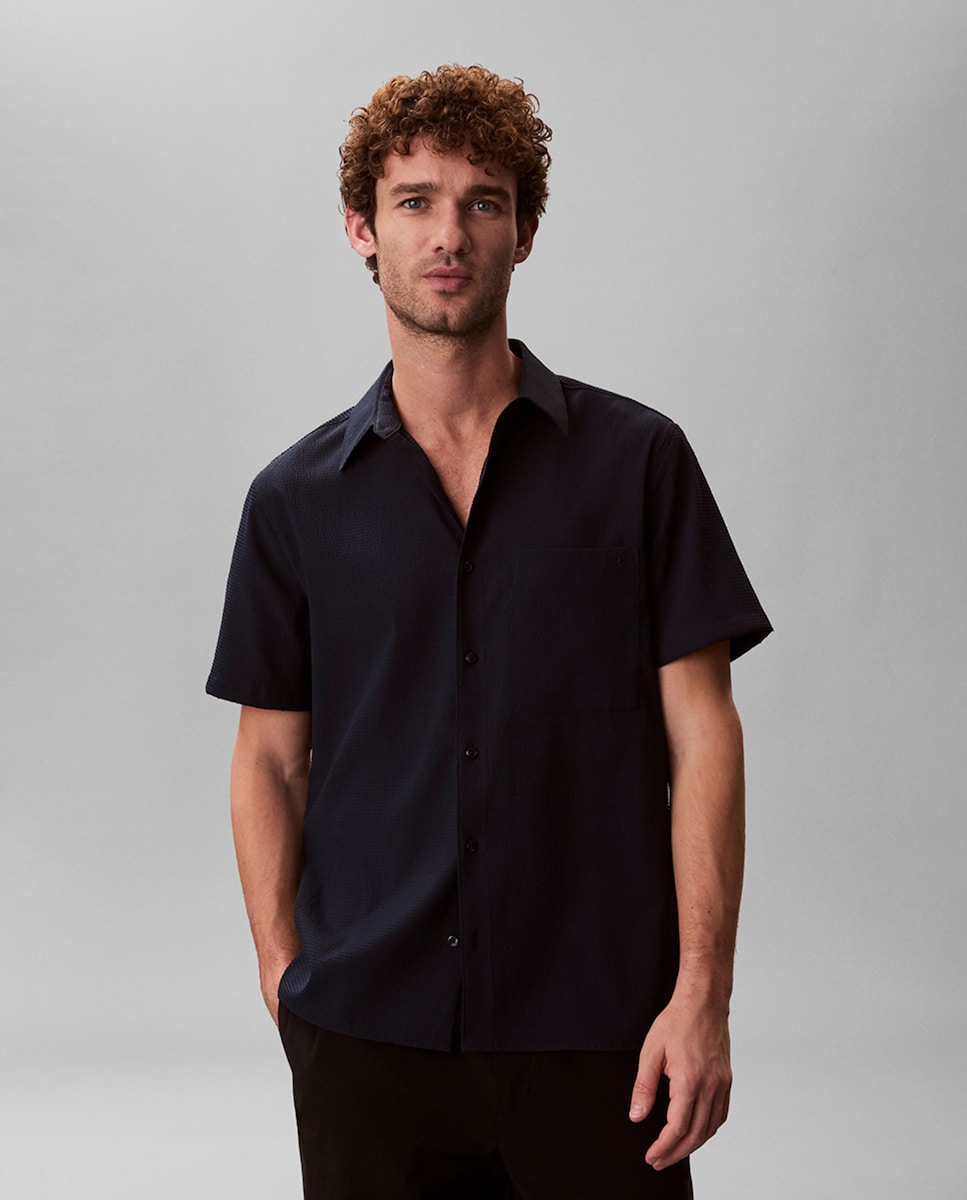 Camisa Clássica de Seersucker com Manga Curta