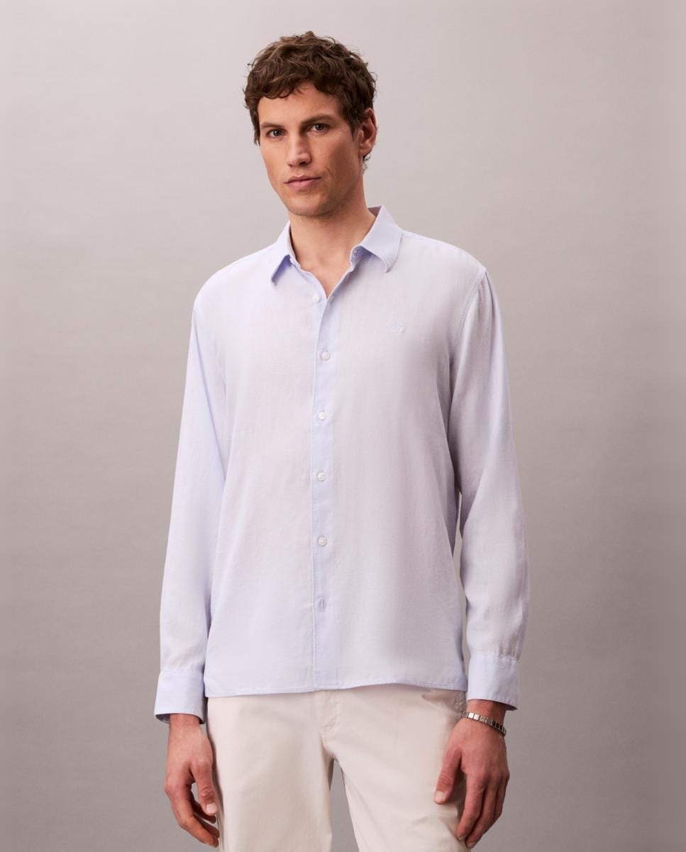 Camisa em Mistura de Linho Justa Lisa