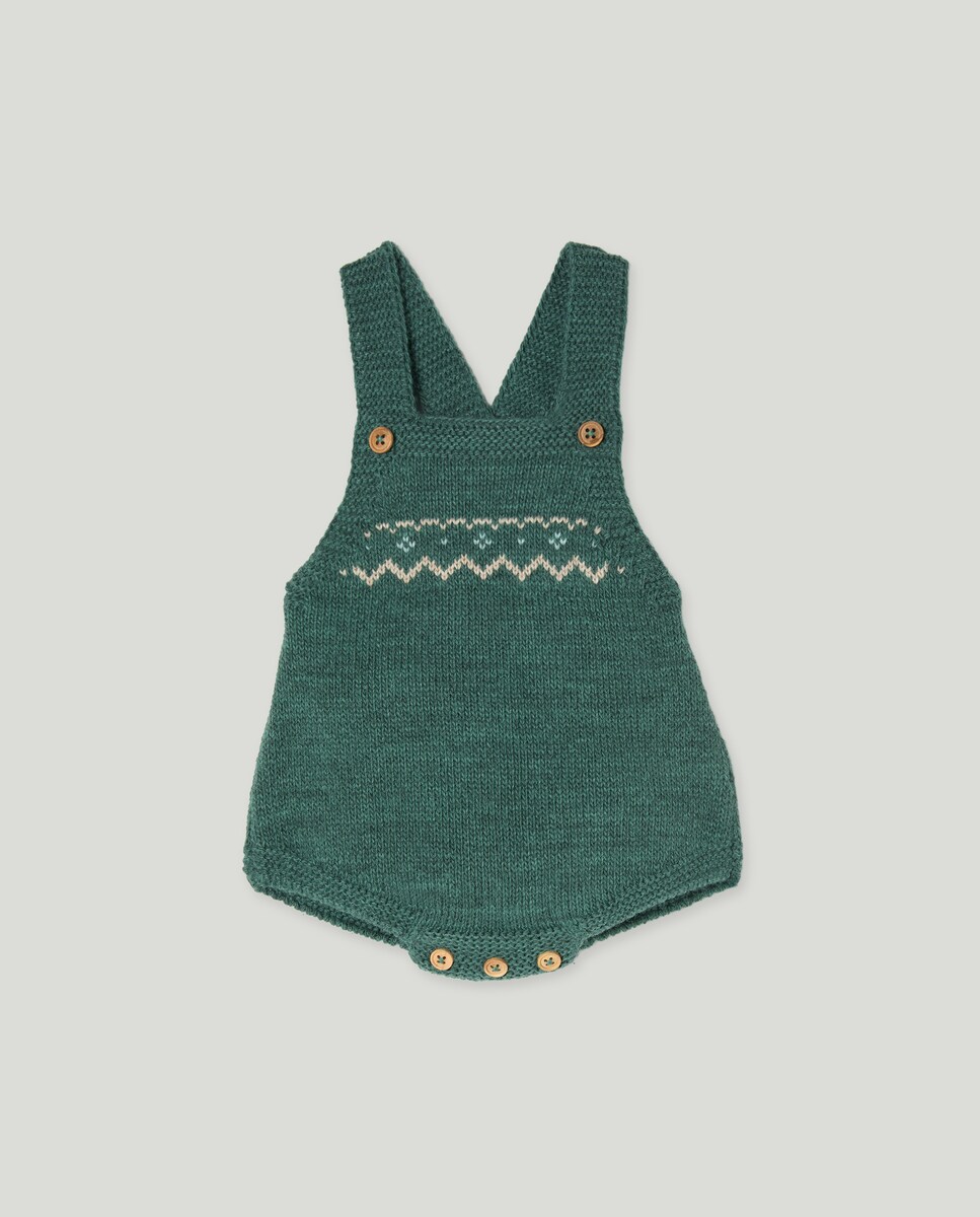 Babygrow de Tricot de Bebé com Alças e Rebordo Decorativo