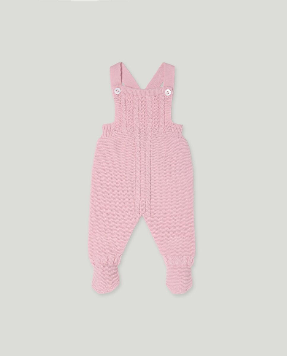Calças com Pés de Tricot com Alças e Malha do Cabo de Bebé