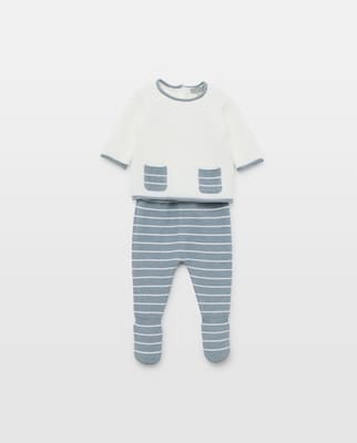 Conjunto de 2 Peças de Tricot Liso de Bebé com Manga Comprida e Dois Bolsos