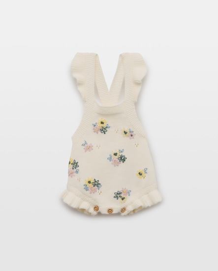 Babygrow de Tricot de Bebé com Alças e Bordado à Mão
