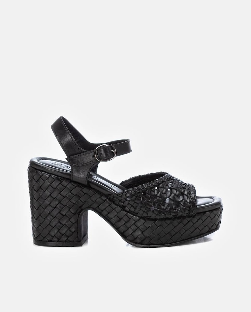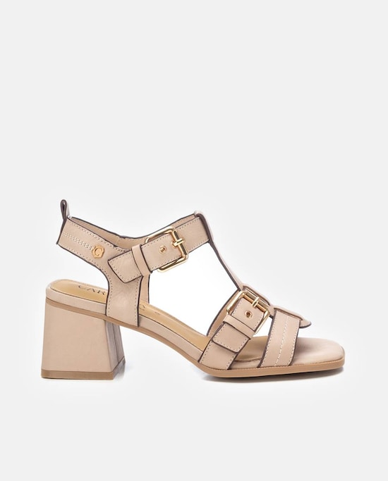 Sandálias com Cunha em Pele com Fecho de Fivela