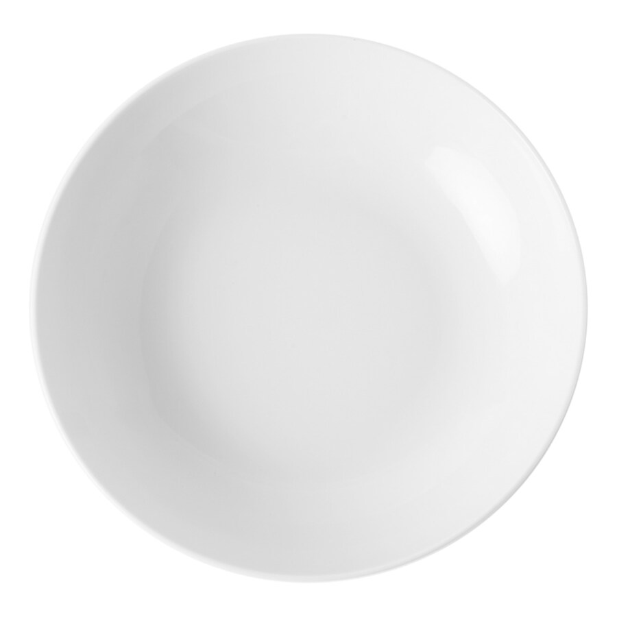 Prato fundo de porcelana com design clássico, adequado para uso diário. É resistente e compatível com micro-ondas e máquina de lavar loiça, facilitando a sua limpeza e manutenção.