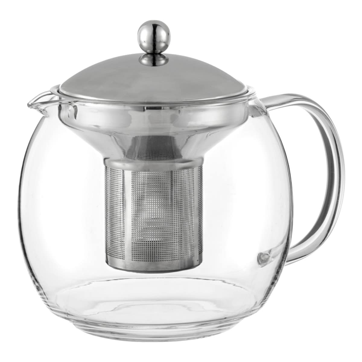 Théière composée de deux pièces de différentes tailles en verre borosilicate et en acier. Le verre borosilicate est très résistant aux températures élevées. Le couvercle en acier intègre l'infuseur pour un confort optimal.