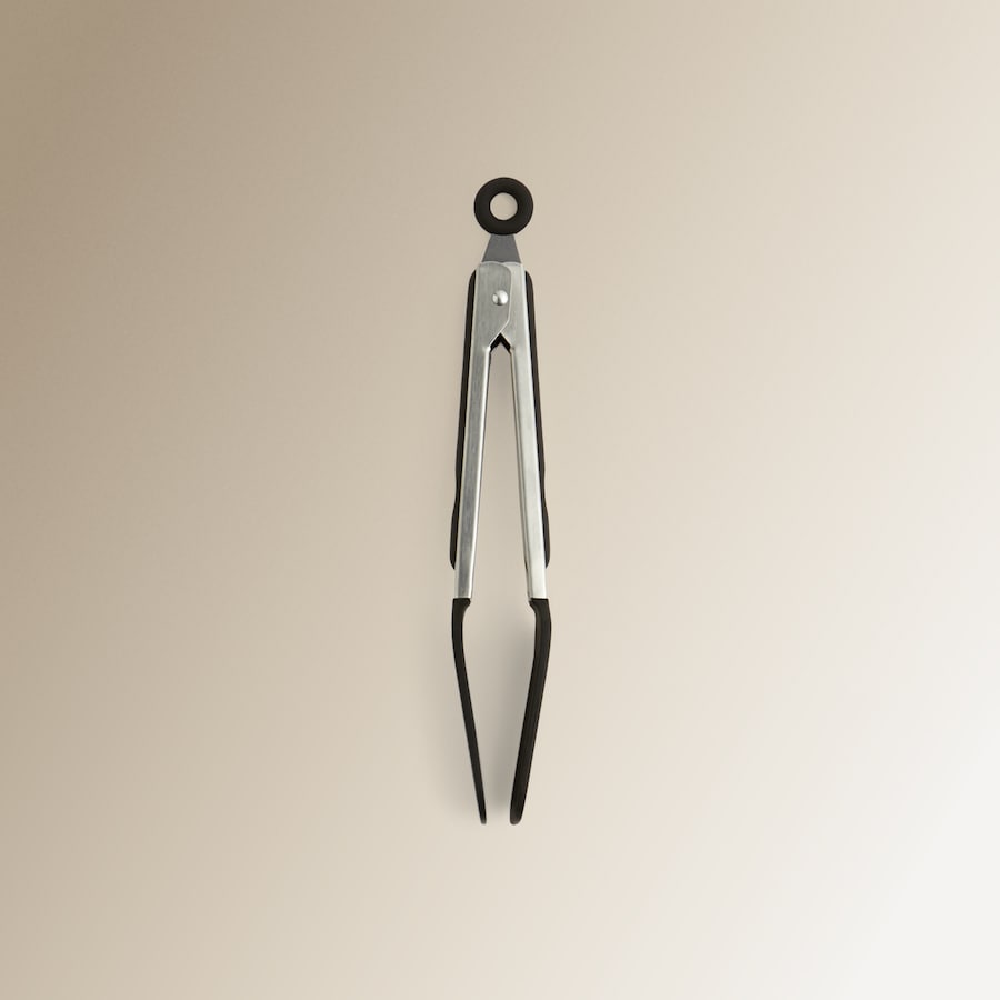 Pinça de cozinha fabricada em aço, com inserções de silicone nas pegas para uma utilização confortável e antiderrapante. As extremidades têm silicone e ranhuras que permitem escorrer os alimentos durante a sua manipulação. Dispõe de um mecanismo de fecho para facilitar a arrumação.