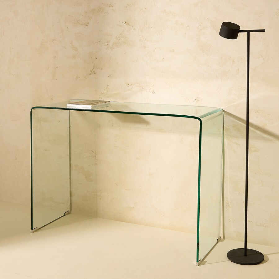 Consola em vidro temperado de 12 mm de espessura com um design minimalista.
