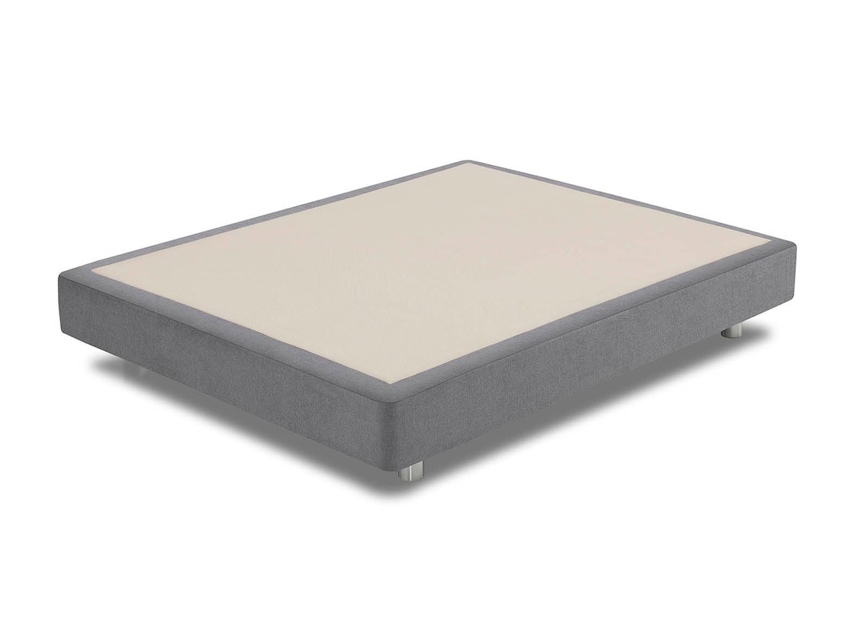 Base de colchão com manta de fibra termoligada envolvendo toda a estrutura de madeira.