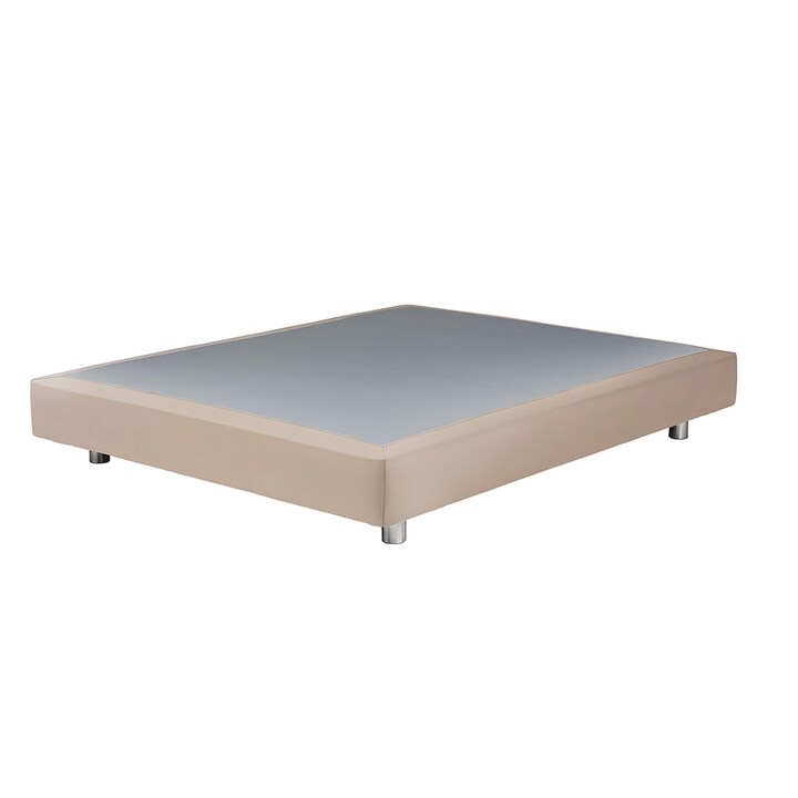 Base de colchão com manta de fibra termoligada envolvendo toda a estrutura de madeira.