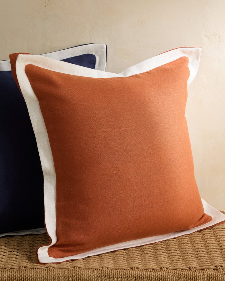 Coussin décoratif uni à volant plat et arrière contrastant.