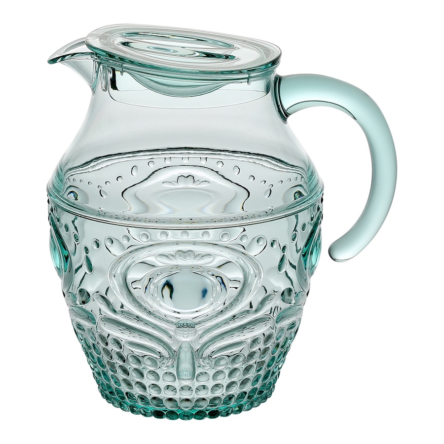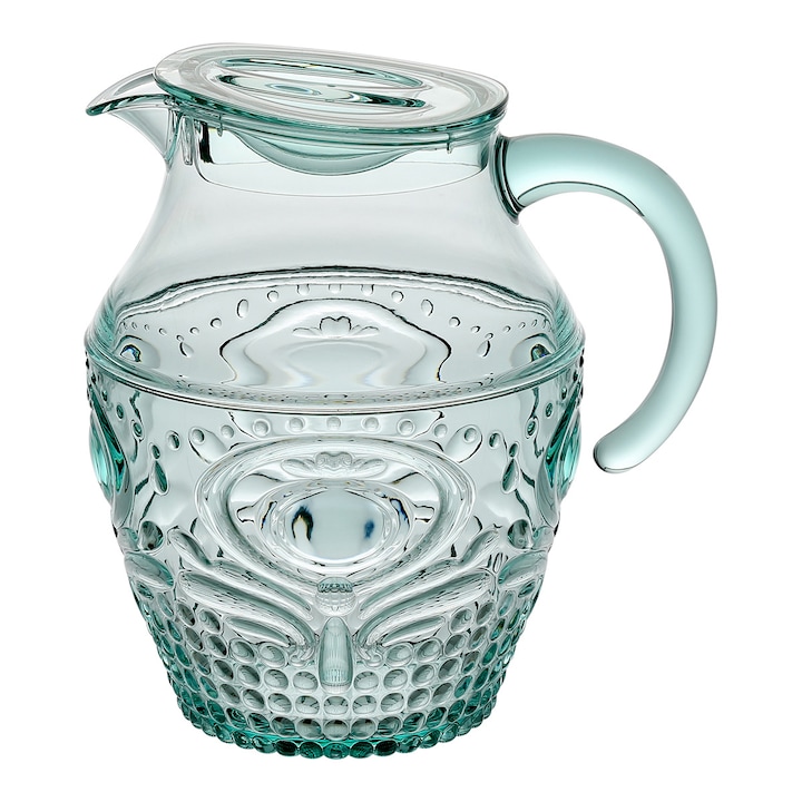 Jarro concebido para utilização no exterior, fabricado em material acrílico resistente. Adequado para servir sumos, limonadas, refrigerantes e água, apresenta um design em relevo que acrescenta funcionalidade e estética às mesas de terraços e jardins.
