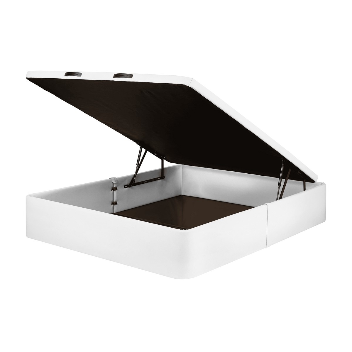 Fácil abertura graças ao sistema de pistões reforçados accionados a gás de alta qualidade impedindo a fricção com a cabeceira. Melhor resistência e resposta ao movimento lateral. Arco metálico na parte superior do tampo que segura o colchão impedindo que escorregue. Altamente resistente devido à sua estrutura de aço e aos seus 3 travessões verticais reforçados (3 x 3 cm).