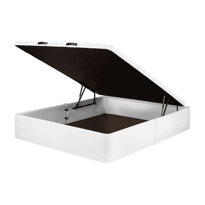 Fácil abertura graças ao sistema de pistões reforçados accionados a gás de alta qualidade impedindo a fricção com a cabeceira. Melhor resistência e resposta ao movimento lateral. Arco metálico na parte superior do tampo que segura o colchão impedindo que escorregue. Altamente resistente devido à sua estrutura de aço e aos seus 3 travessões verticais reforçados (3 x 3 cm).