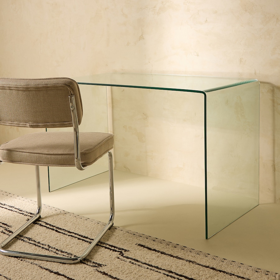 De formas retangulares, é feito inteiramente de vidro temperado de 12 mm de espessura, altamente resistente.