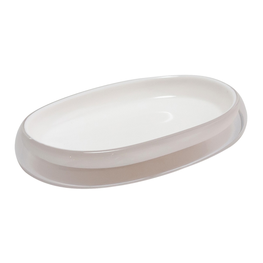 Doseador de sabonete fabricado em metacrilato, com acabamento em tom creme. Faz parte de uma série de acessórios de linhas curvas, concebidos para utilização na casa de banho.